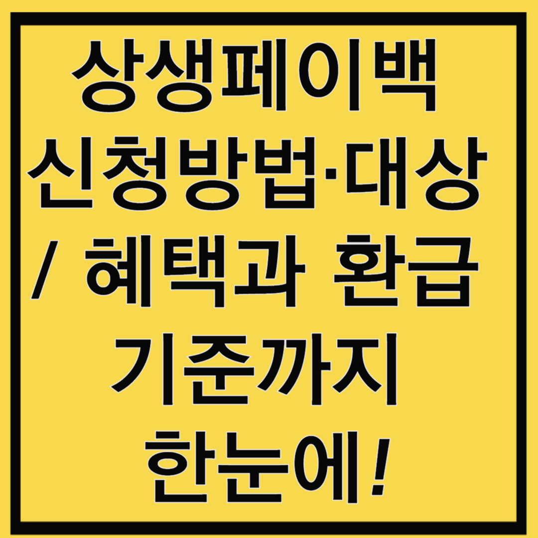 상생페이백 신청방법, 대상, 혜택 총정리! 카드사 앱으로 간단히 신청하고 소비 증가분의 일정 금액을 환급받으세요!! 목차상생페이백 소개 및 개요신청 대상 및 기간환급 조건 및 인정/제외 업종혜택·지급 방식 및 FAQ 1. 상생페이백 소개 및 개요상생페이백은 2025년 9월부터 11월까지 시행되는 정부의 소비촉진 제도로, 국민이 카드 사용량이 지난 2024년 월평균보다 증가한 만큼의 금액 일부를 환급해주는 제도입니다. 환급은 증가분의 20%를 기준으로 하며, 매월 최대 10만 원, 3개월간 최대 30만 원까지 받을 수 있습니다. 2. 신청 대상 및 기간 ✨ 신청 대상:만 19세 이상 — 2006년 12월 31일 이전 출생자2024년에 본인 명의로 신용카드 또는 체크카드 사용 실적이 있는 사람대한민국 국..